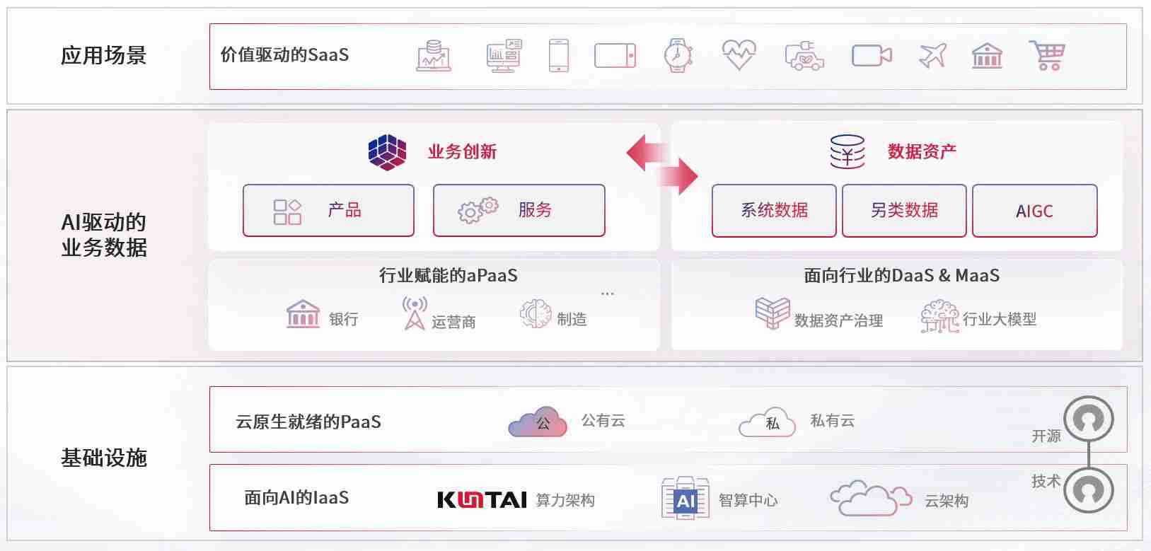 数字时代,,,围绕企业数字化转型的关键要素,,,Z6尊龙数码开创性的提出数云融合战略和技术体系框架,,着力在云原生、、、数字原生、、、、AI原生和信创产业上架构产品和服务能力,,,为处在不同数字化转型阶段的快消零售、、、、汽车、、金融、、、、医疗、、、、政企、、教育、、运营商等行业客户提供泛在的敏捷IT能力和融合的数据驱动能力,,,,构建跨界融合创新的数字业务场景和新业务模式,,助力企业级客户建立面向未来的核心能力和竞争优势,,,,全面推动社会的数字化、、、智能化转型升级。。。